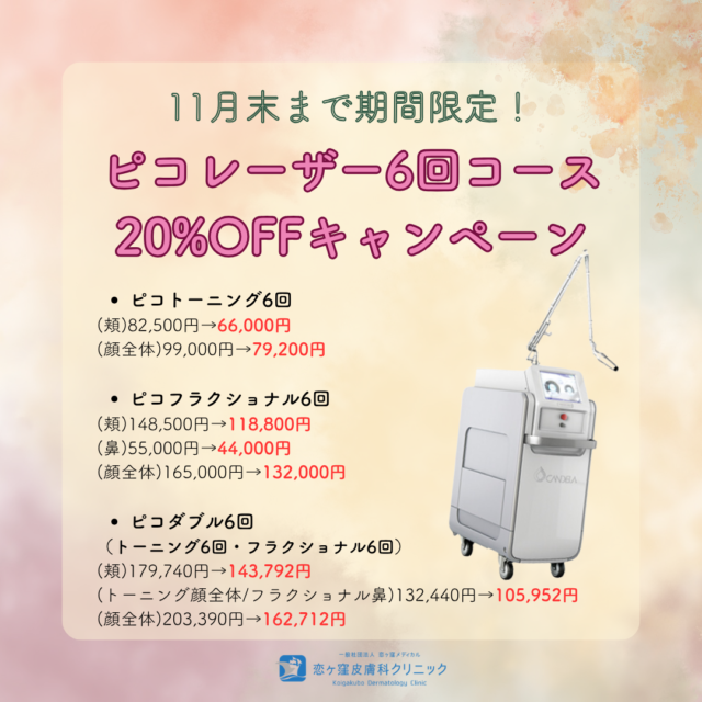 11月末まで期間限定キャンペーンのご案内「ピコレーザー」「ボトックス」「ダイヤモンドチップ」